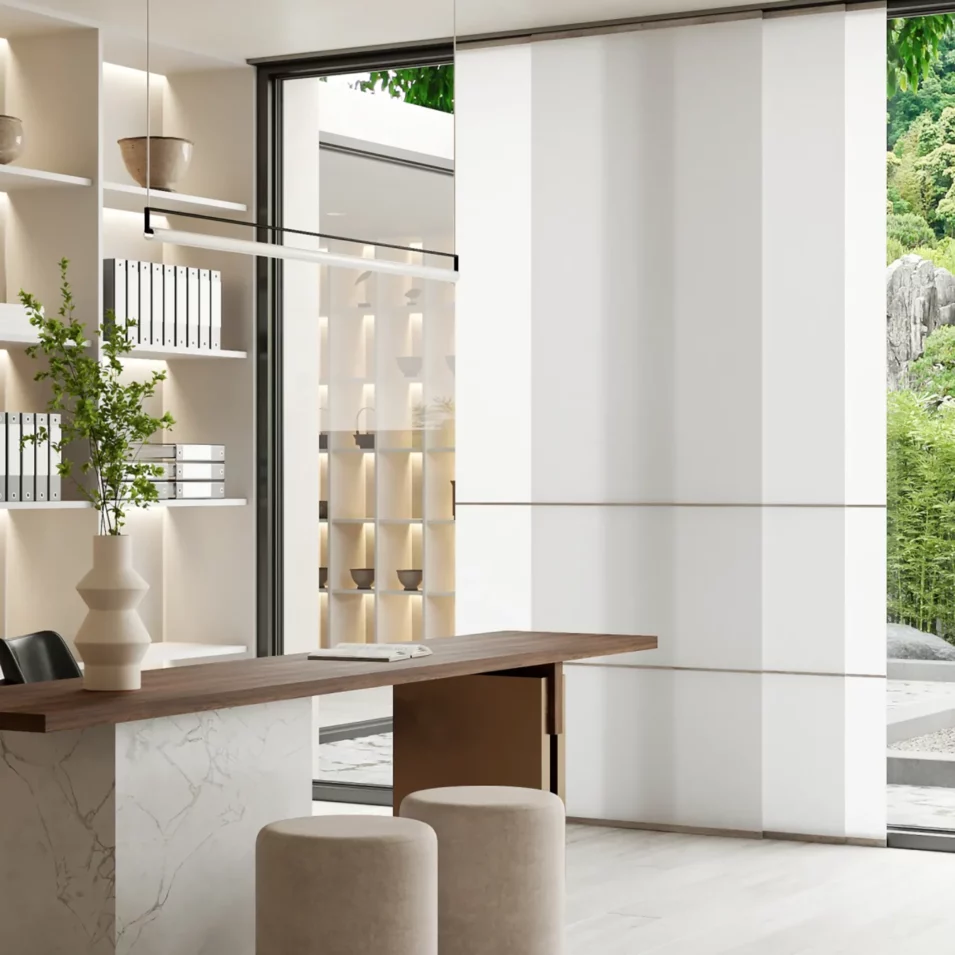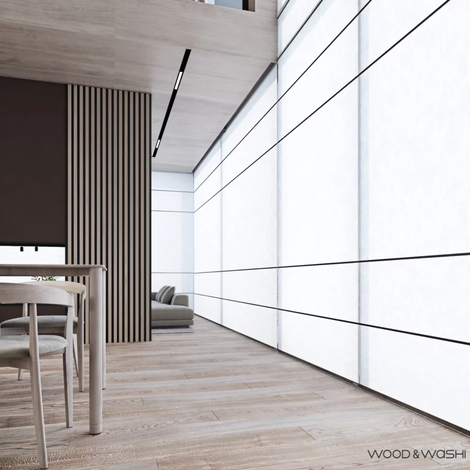 Notre gamme de stores en papier Washi est disponible sous différentes formes : enrouleurs, panneaux japonais, panneaux horizontaux ou en bandes verticales de 250mm, offrant ainsi une large palette de choix pour personnaliser votre intérieur. Avec un moteur en option, vous pouvez également profiter d’une expérience de contrôle sans effort.